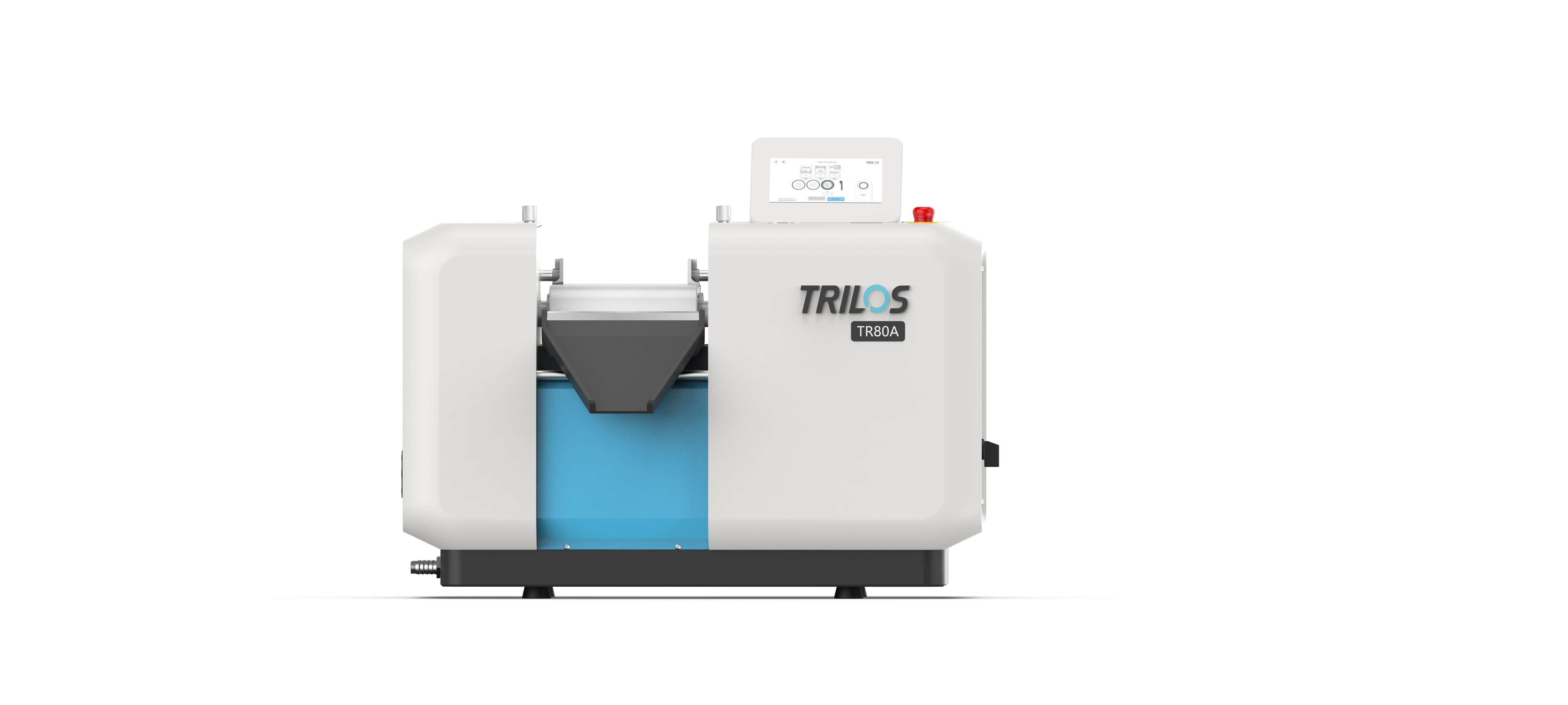 TRILOS TR80A three roll mill is a pilot model three roll mill. Its processing capacity ranging from a minimum of 0.02 L/hour to a maximum of 20 L/hour perfectly solves the problems of laboratory testing and small&medium-scaled trial production for users. The highly innovative design makes the equipment structure more compact and small, which can be conveniently placed on the laboratory table for use. The user-friendly UI is realized by an industrial control panel. The unique online gap correction and formula menu functions make the equipment operation easier, allowing users to control it in an interactive way instead of facing a cold equipment.
